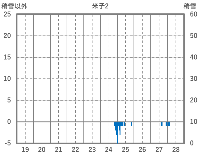 | 日 | 時 | 気温 | 降水 | 風向/風速 | 日照 | 積雪 | 降雪 |