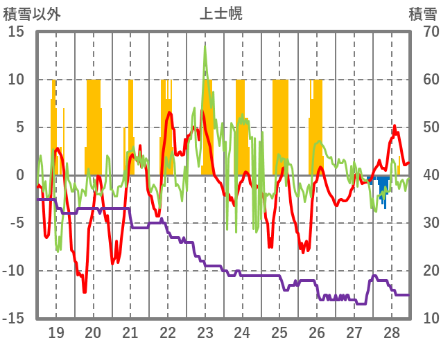 | 日 | 時 | 気温 | 降水 | 風向/風速 | 日照 | 積雪 | 降雪 |
