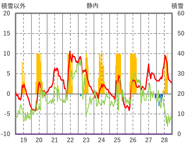 | 日 | 時 | 気温 | 降水 | 風向/風速 | 日照 | 積雪 | 降雪 |