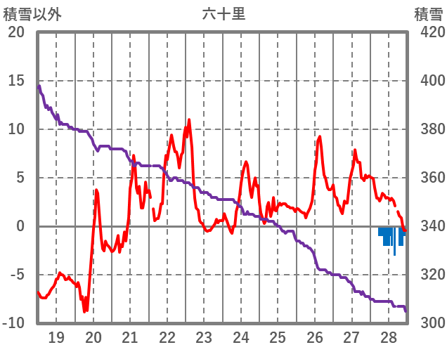 | 日 | 時 | 気温 | 降水 | 風向/風速 | 日照 | 積雪 | 降雪 |