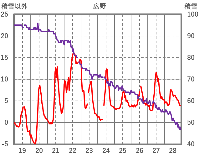 | 日 | 時 | 気温 | 降水 | 風向/風速 | 日照 | 積雪 | 降雪 |