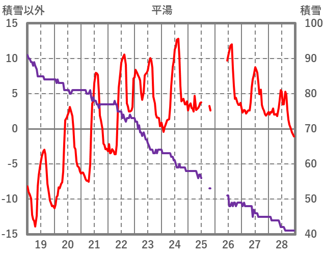 | 日 | 時 | 気温 | 降水 | 風向/風速 | 日照 | 積雪 | 降雪 |