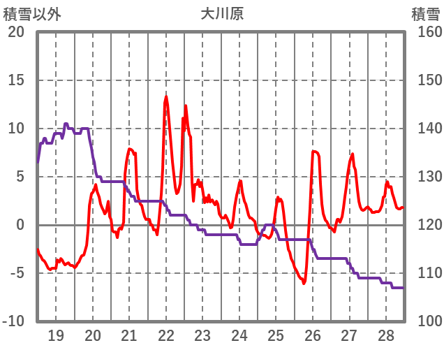 | 日 | 時 | 気温 | 降水 | 風向/風速 | 日照 | 積雪 | 降雪 |