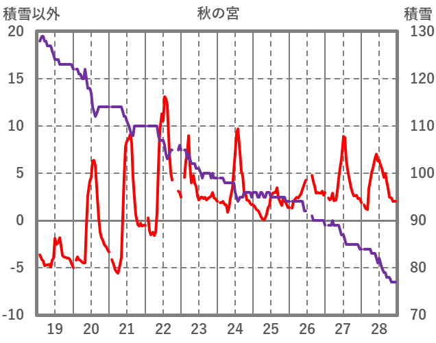 | 日 | 時 | 気温 | 降水 | 風向/風速 | 日照 | 積雪 | 降雪 |