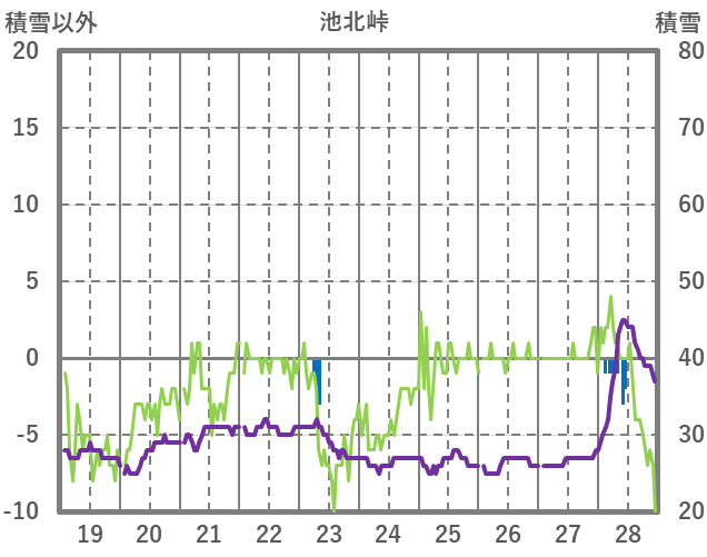 | 日 | 時 | 気温 | 降水 | 風向/風速 | 日照 | 積雪 | 降雪 |