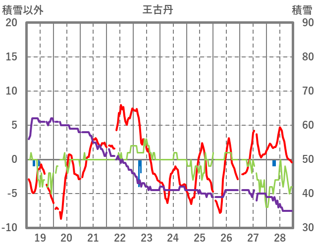 | 日 | 時 | 気温 | 降水 | 風向/風速 | 日照 | 積雪 | 降雪 |