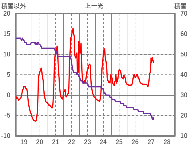 | 日 | 時 | 気温 | 降水 | 風向/風速 | 日照 | 積雪 | 降雪 |