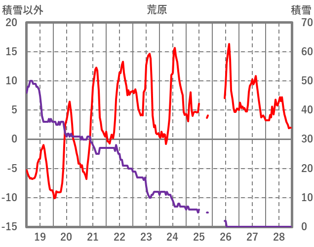 | 日 | 時 | 気温 | 降水 | 風向/風速 | 日照 | 積雪 | 降雪 |