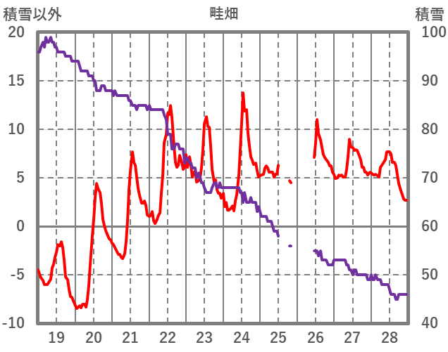 | 日 | 時 | 気温 | 降水 | 風向/風速 | 日照 | 積雪 | 降雪 |