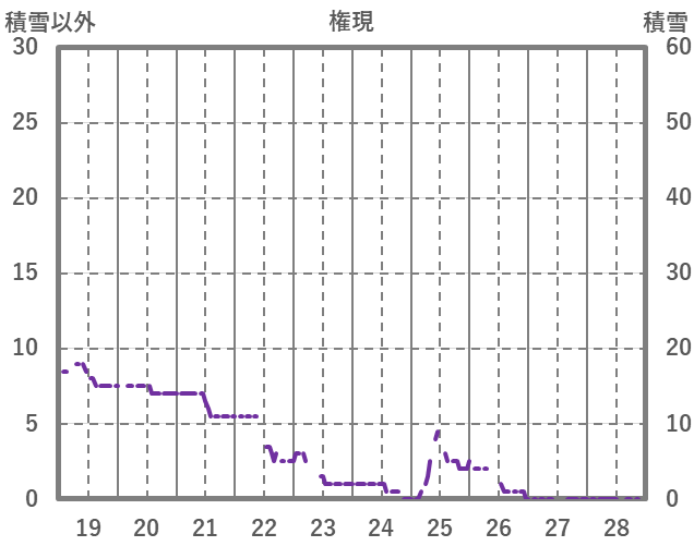 | 日 | 時 | 気温 | 降水 | 風向/風速 | 日照 | 積雪 | 降雪 |