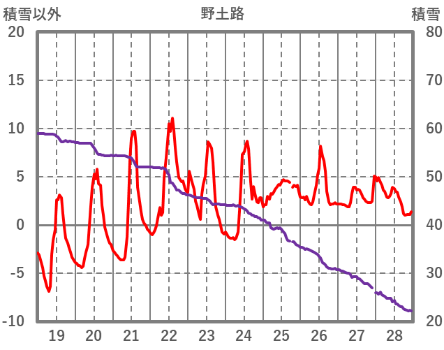 | 日 | 時 | 気温 | 降水 | 風向/風速 | 日照 | 積雪 | 降雪 |