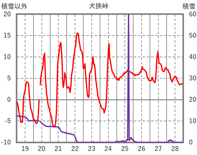| 日 | 時 | 気温 | 降水 | 風向/風速 | 日照 | 積雪 | 降雪 |