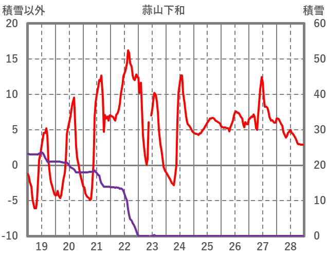 | 日 | 時 | 気温 | 降水 | 風向/風速 | 日照 | 積雪 | 降雪 |