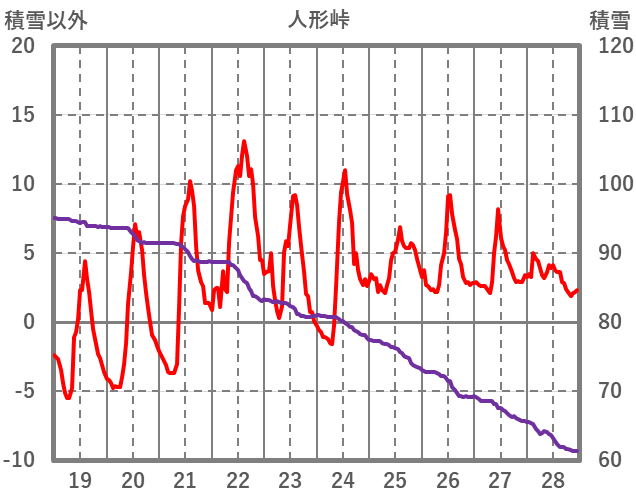 | 日 | 時 | 気温 | 降水 | 風向/風速 | 日照 | 積雪 | 降雪 |