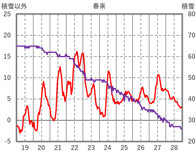 | 日 | 時 | 気温 | 降水 | 風向/風速 | 日照 | 積雪 | 降雪 |
