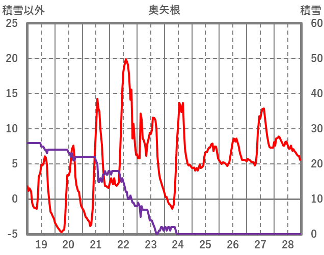 | 日 | 時 | 気温 | 降水 | 風向/風速 | 日照 | 積雪 | 降雪 |