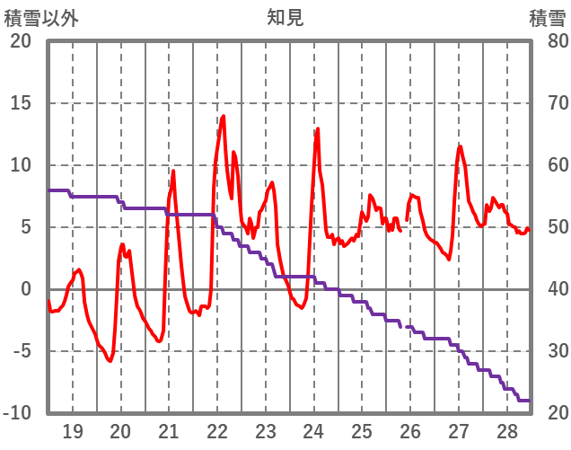 | 日 | 時 | 気温 | 降水 | 風向/風速 | 日照 | 積雪 | 降雪 |
