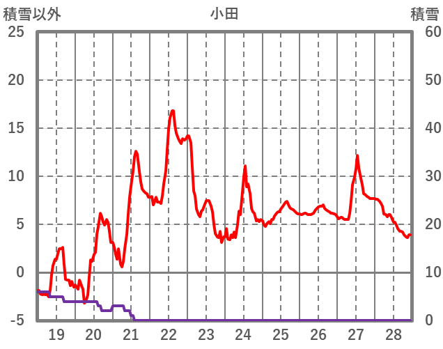 | 日 | 時 | 気温 | 降水 | 風向/風速 | 日照 | 積雪 | 降雪 |