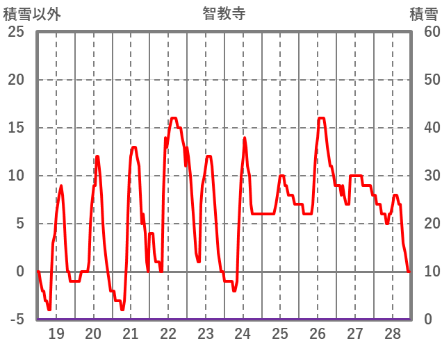 | 日 | 時 | 気温 | 降水 | 風向/風速 | 日照 | 積雪 | 降雪 |