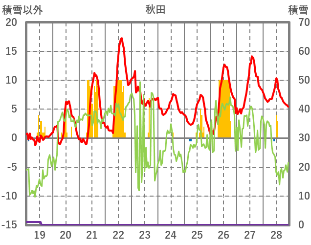 | 日 | 時 | 気温 | 降水 | 風向/風速 | 日照 | 積雪 | 降雪 |