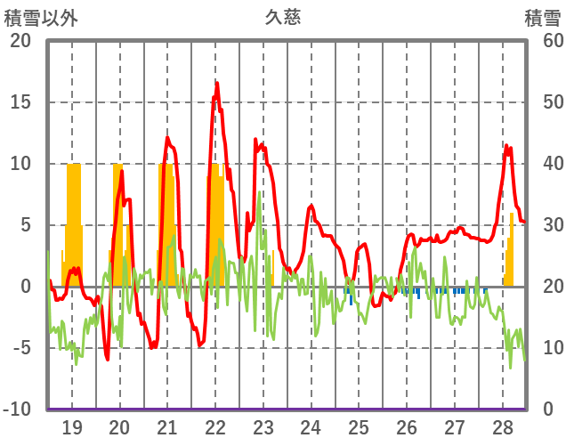 | 日 | 時 | 気温 | 降水 | 風向/風速 | 日照 | 積雪 | 降雪 |