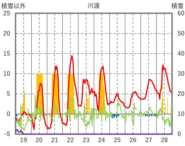 | 日 | 時 | 気温 | 降水 | 風向/風速 | 日照 | 積雪 | 降雪 |
