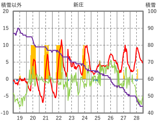 | 日 | 時 | 気温 | 降水 | 風向/風速 | 日照 | 積雪 | 降雪 |