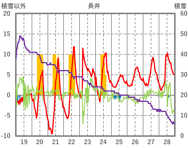 | 日 | 時 | 気温 | 降水 | 風向/風速 | 日照 | 積雪 | 降雪 |