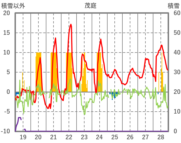 | 日 | 時 | 気温 | 降水 | 風向/風速 | 日照 | 積雪 | 降雪 |