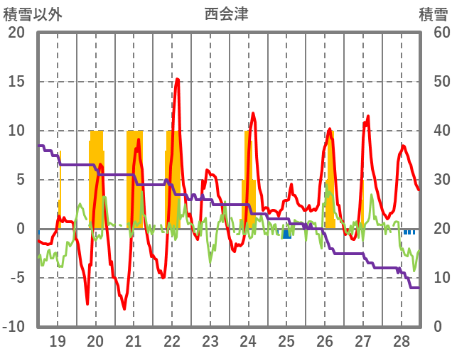 | 日 | 時 | 気温 | 降水 | 風向/風速 | 日照 | 積雪 | 降雪 |
