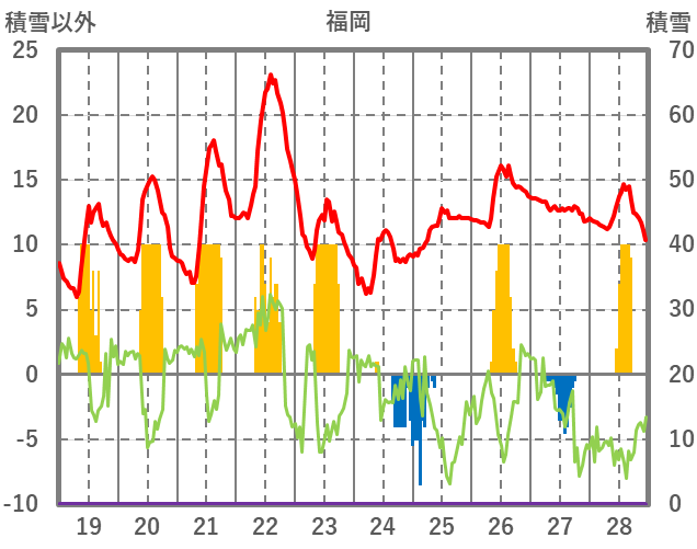 | 日 | 時 | 気温 | 降水 | 風向/風速 | 日照 | 積雪 | 降雪 |