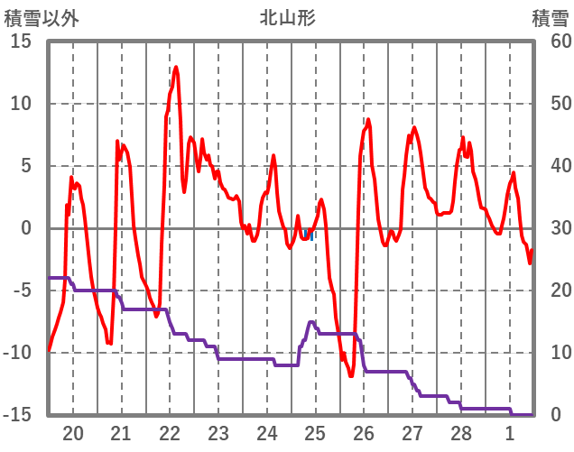 | 日 | 時 | 気温 | 降水 | 風向/風速 | 日照 | 積雪 | 降雪 |