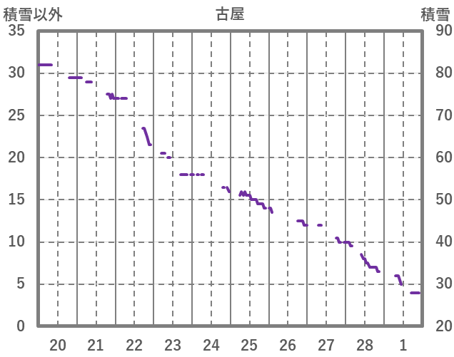 | 日 | 時 | 気温 | 降水 | 風向/風速 | 日照 | 積雪 | 降雪 |
