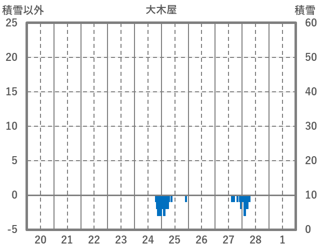 | 日 | 時 | 気温 | 降水 | 風向/風速 | 日照 | 積雪 | 降雪 |