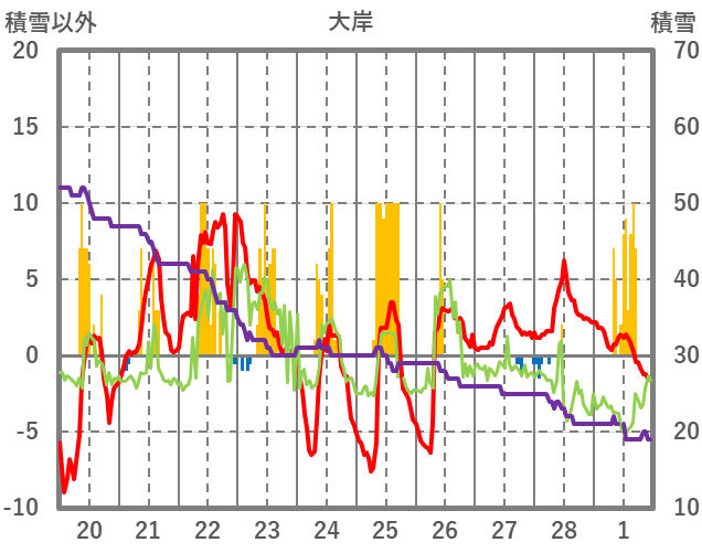 | 日 | 時 | 気温 | 降水 | 風向/風速 | 日照 | 積雪 | 降雪 |