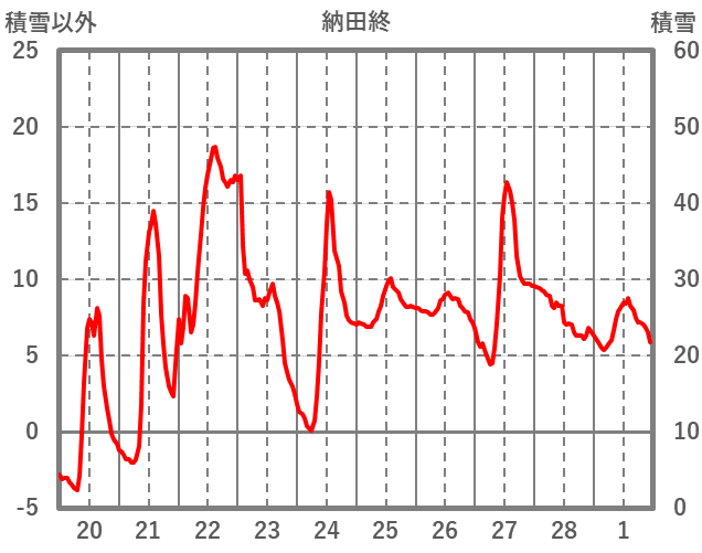 | 日 | 時 | 気温 | 降水 | 風向/風速 | 日照 | 積雪 | 降雪 |