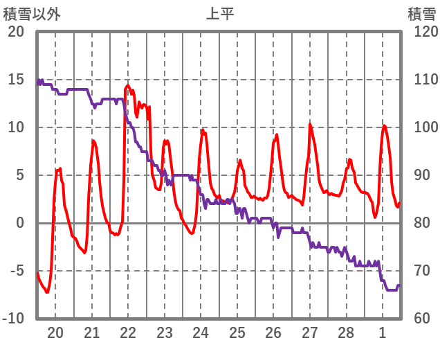 | 日 | 時 | 気温 | 降水 | 風向/風速 | 日照 | 積雪 | 降雪 |