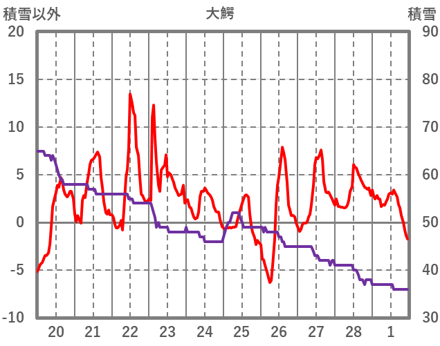 | 日 | 時 | 気温 | 降水 | 風向/風速 | 日照 | 積雪 | 降雪 |