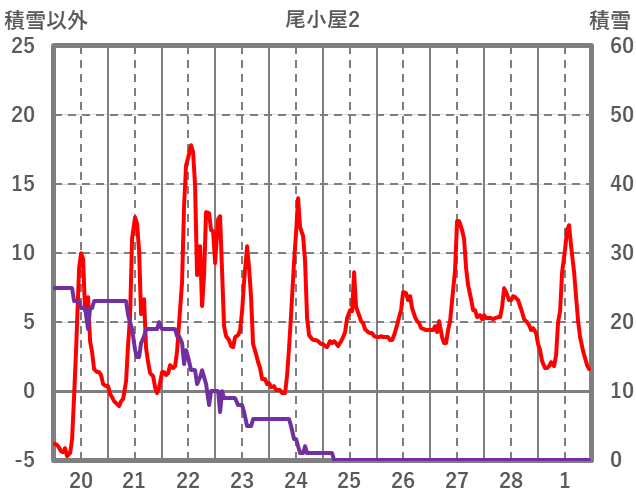 | 日 | 時 | 気温 | 降水 | 風向/風速 | 日照 | 積雪 | 降雪 |