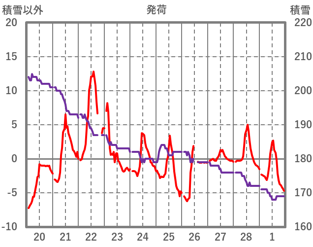 | 日 | 時 | 気温 | 降水 | 風向/風速 | 日照 | 積雪 | 降雪 |