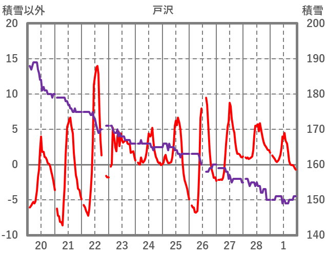 | 日 | 時 | 気温 | 降水 | 風向/風速 | 日照 | 積雪 | 降雪 |