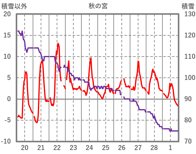 | 日 | 時 | 気温 | 降水 | 風向/風速 | 日照 | 積雪 | 降雪 |