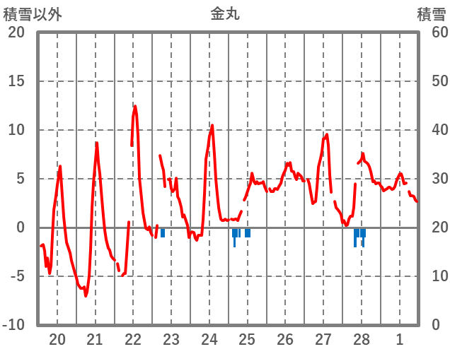 | 日 | 時 | 気温 | 降水 | 風向/風速 | 日照 | 積雪 | 降雪 |