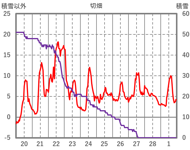 | 日 | 時 | 気温 | 降水 | 風向/風速 | 日照 | 積雪 | 降雪 |