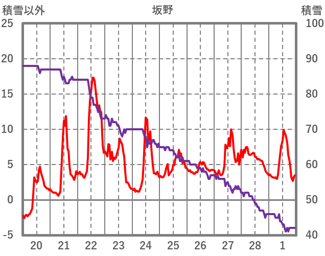 | 日 | 時 | 気温 | 降水 | 風向/風速 | 日照 | 積雪 | 降雪 |