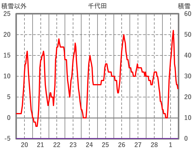 | 日 | 時 | 気温 | 降水 | 風向/風速 | 日照 | 積雪 | 降雪 |