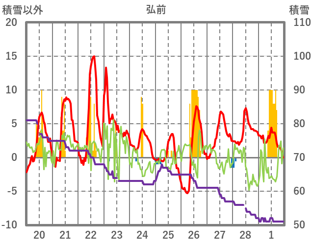 | 日 | 時 | 気温 | 降水 | 風向/風速 | 日照 | 積雪 | 降雪 |