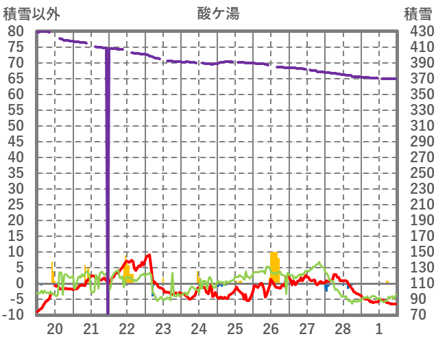 | 日 | 時 | 気温 | 降水 | 風向/風速 | 日照 | 積雪 | 降雪 |