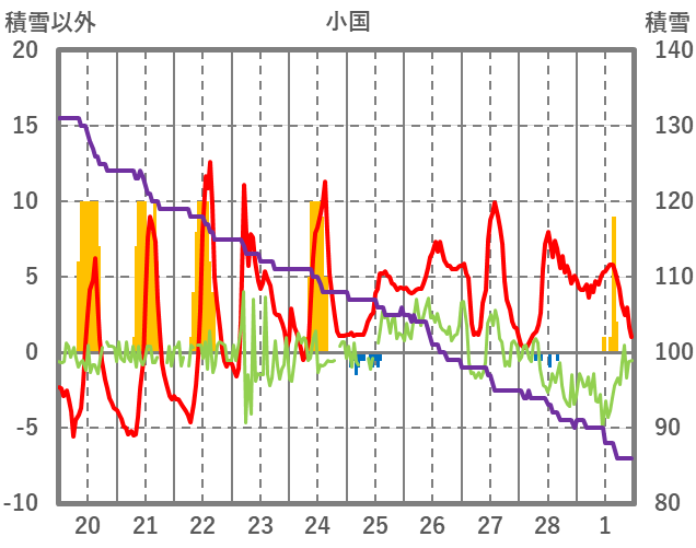| 日 | 時 | 気温 | 降水 | 風向/風速 | 日照 | 積雪 | 降雪 |