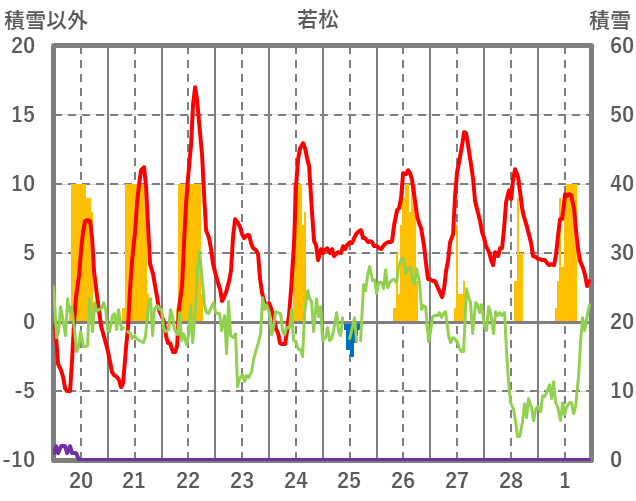 | 日 | 時 | 気温 | 降水 | 風向/風速 | 日照 | 積雪 | 降雪 |